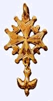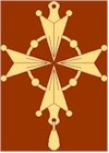 Vier doppelte Flammen, die von einem gemeinsamen Mittelpunkt (Christus) ausgehen und eine Art Malteserkreuz bilden. Die Kreuzesarme sind durch eine Krone verbunden, und um dem Ganzen ein wenig Eleganz zu geben, wurden die Spitzen des Kreuzes mit "Perlen" verziert.