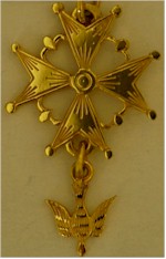 Die heute dominierende Form zeigt die vier offenen Winkel zwischen den Schenkeln des Malteserkreuzes, geschmückt mit den französischen Lilien. Deren untere Hälfte ist derart gestutzt, daß ein Rund im Kreuz gebildet wird. Die acht Enden der eingewinkelten Dreiecksschenkel sind mit Kreisen besetzt. Das Kreuz trägt an einem Ring eine Taube.